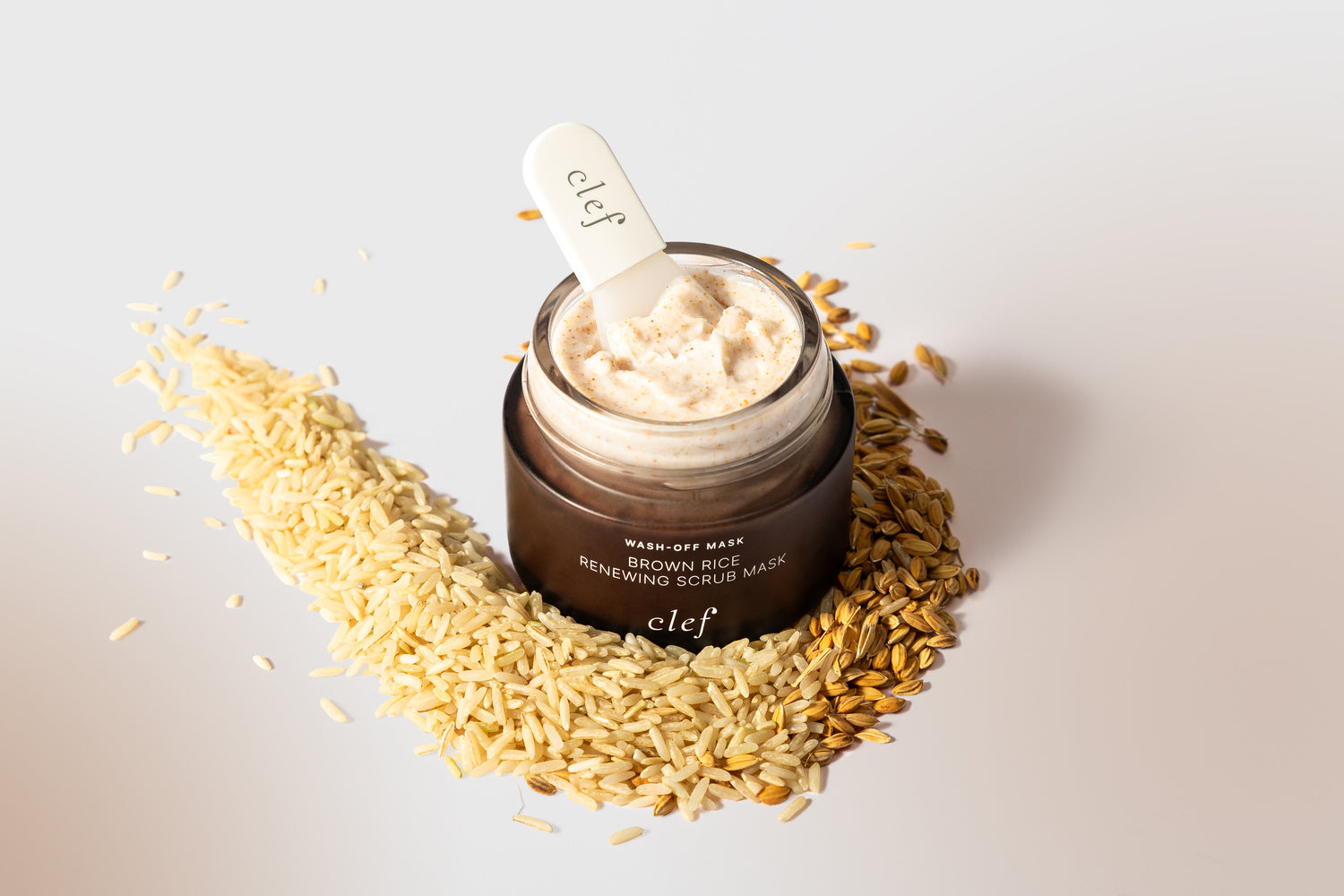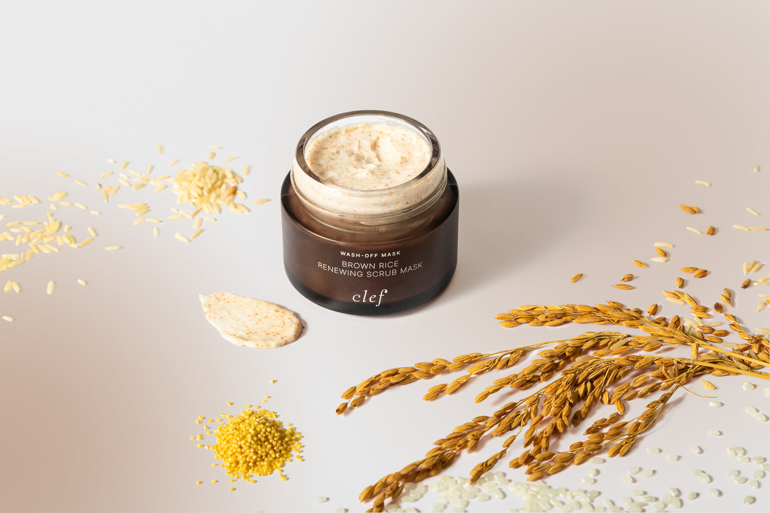 The active ingredients in CLEF Brown Rice Renewing Scrub Mask can restore the skin’s healthy glow.